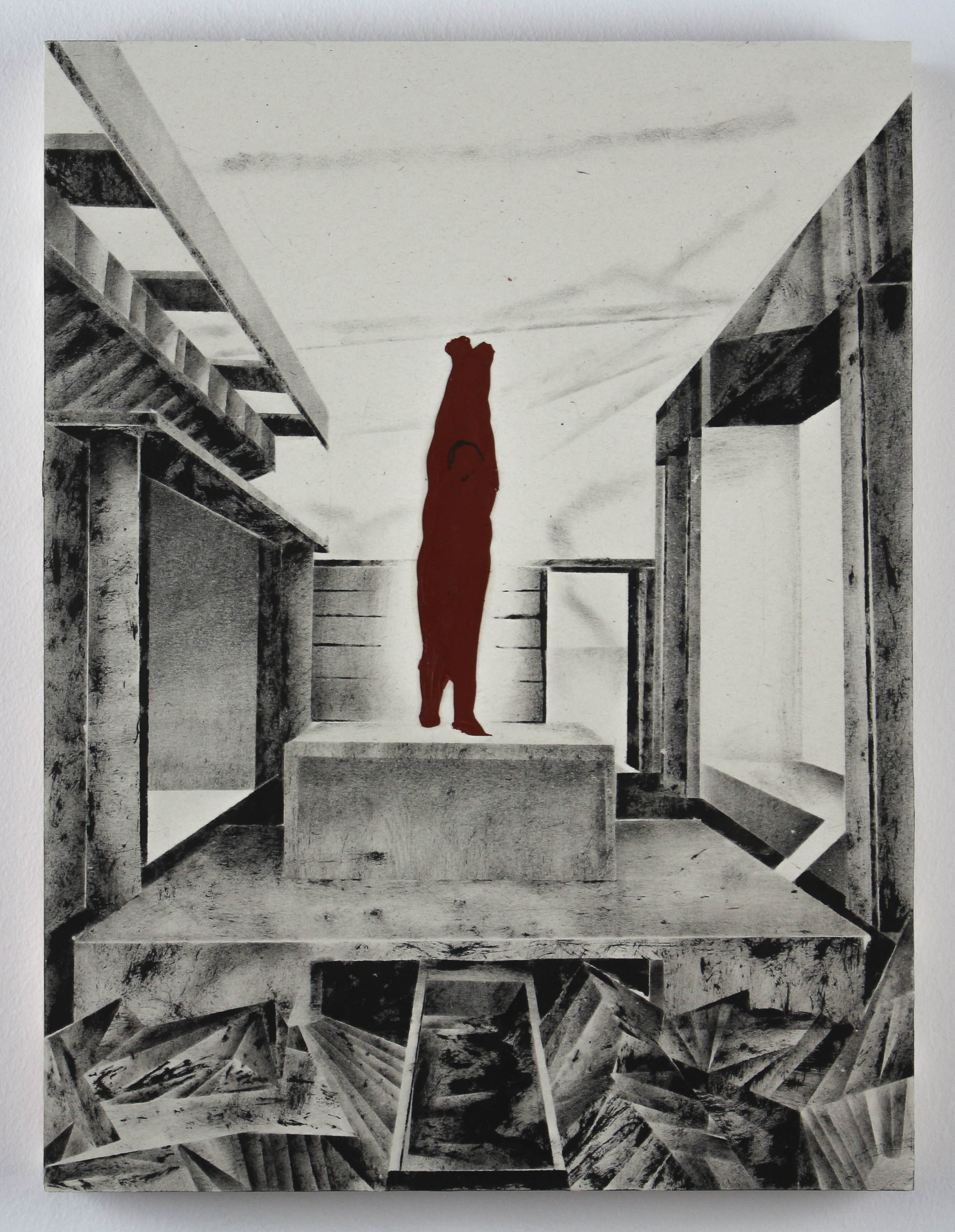 ink and oil on paper on wood